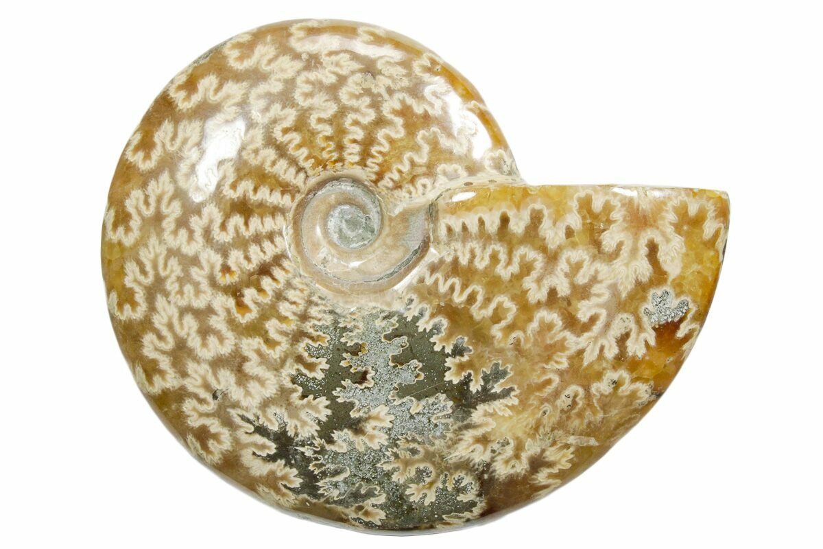 Ammonites were predatory, marine mollusks that thrived during the Paleozoic and Mesozoic eras, particularly in the Jurassic and Cretaceous periods, before going extinct around 66 million years ago. These creatures are characterized by their coiled, spiral shells, which resemble the modern-day nautilus. Ammonite shells were divided into chambers; as they grew, they built new chambers and sealed off the old ones. These chambers were filled with gas, which helped them control buoyancy in the ocean.