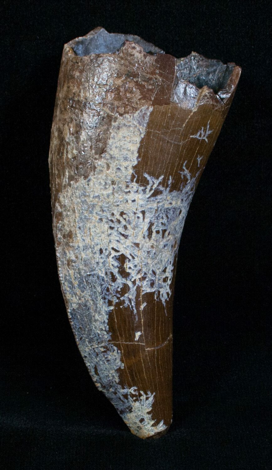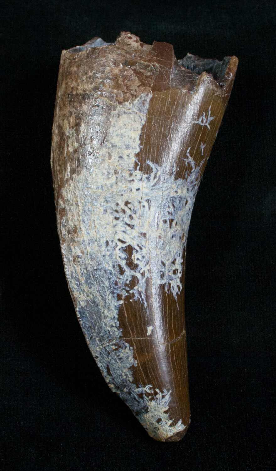 The tooth most likely came from the dentary, tooth position 2-6. It's big enough that it would have come from an adult T-Rex. Based on tooth size comparisons it probably came from an animal around 30-36 feet in length, a bit smaller than Stan.