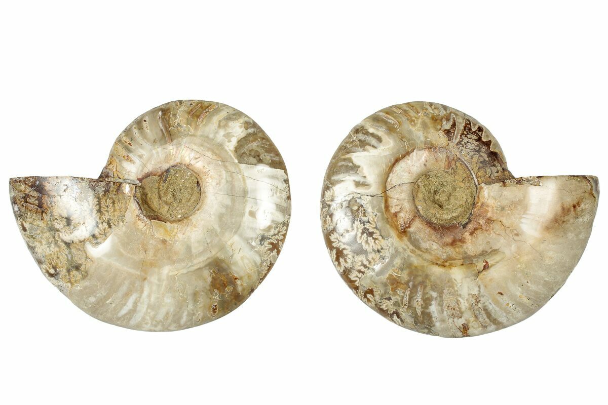 It exhibits gorgeous mineralization within the chambers, each separated by white calcite septa (divisions). This highly polished exotic ammonite makes a superb display piece with tremendous historical appeal.