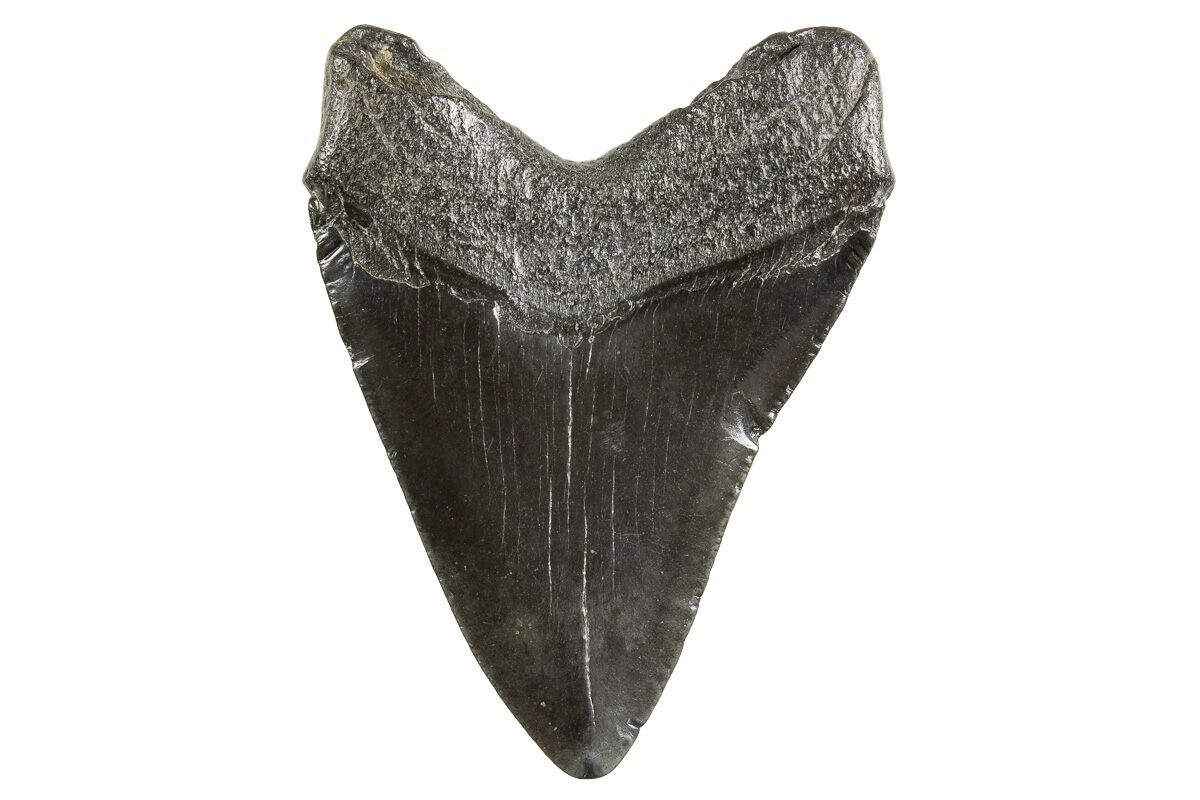 Megalodon had a cosmopolitan (global) distribution and its giant teeth can be found in deposits throughout the world. Some are collected on land in phosphate deposits, while many are collected from rivers and coastlines after eroding out of the rocks. This contributes to the water-worn, polished appearance of many teeth.