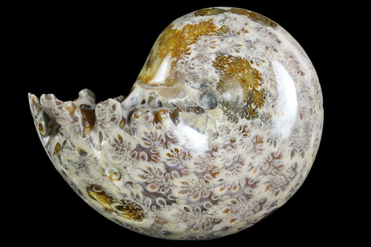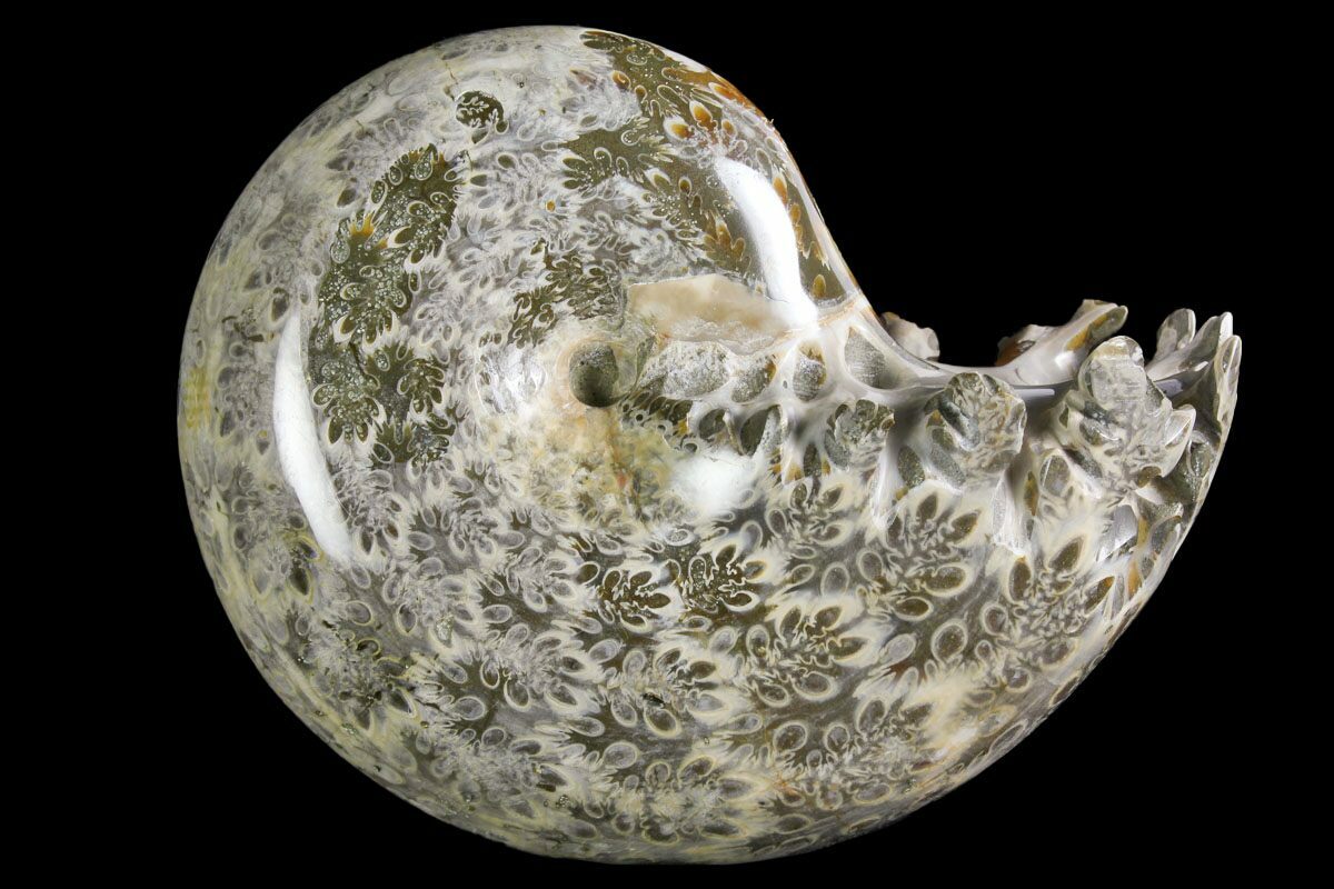 The outer shell of ammonites often displays intricate ribbed or ridged patterns and their fossils sometimes show a wide range of beautiful colors due to mineralization over time. The shells fossilized well, making ammonites abundant in the fossil record.. In addition to being popular in fossil collections, ammonites are valuable in geological studies, as they serve as index fossils, helping scientists date rock layers and understand the Earth's prehistoric environments.