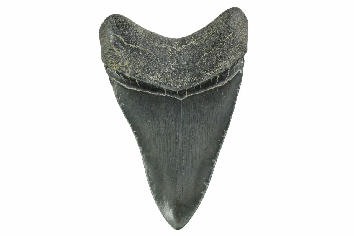 The standard measure for megalodon teeth is slant height, or the longest edge of the tooth. Adult megalodon teeth were typically in the 4 to 5 inch range: teeth over 6 inches are rare and represent super-sized individuals. Only a handful of teeth have ever been found over seven inches.