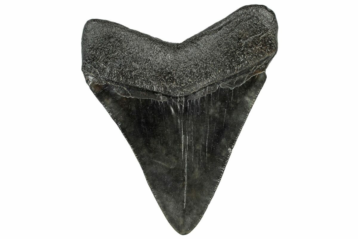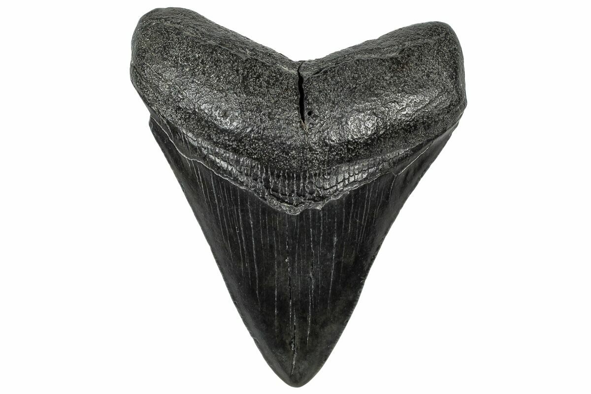 The standard measure for megalodon teeth is slant height, or the longest edge of the tooth. Adult megalodon teeth were typically in the 4 to 5 inch range: teeth over 6 inches are rare and represent super-sized individuals. Only a handful of teeth have ever been found over seven inches.
