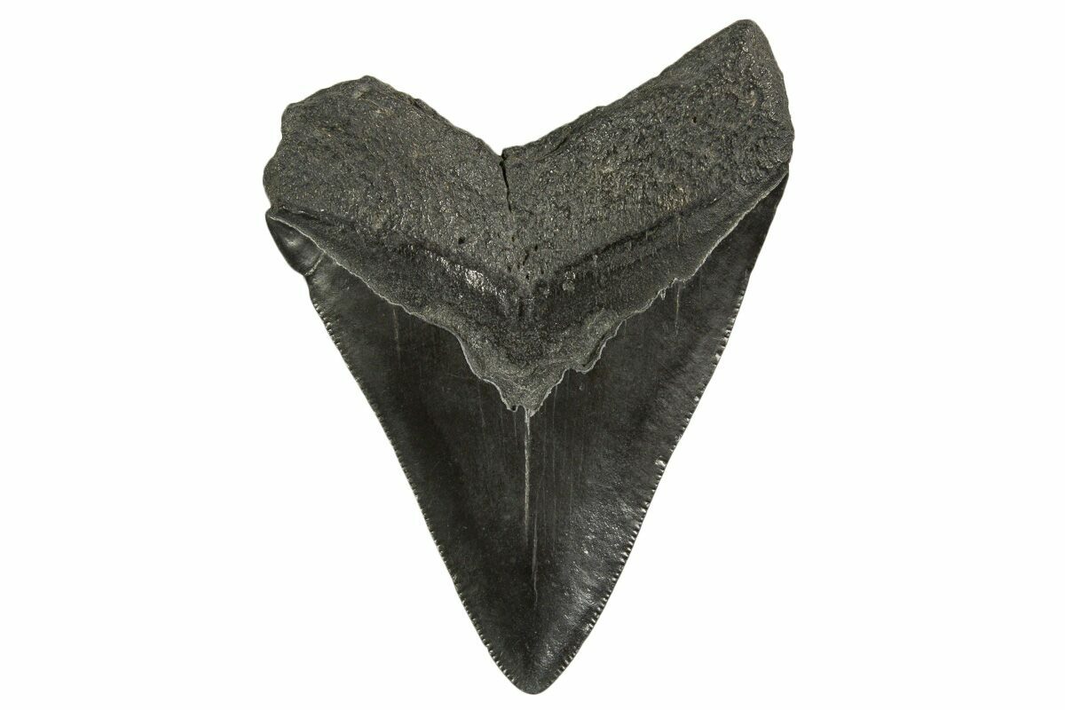 Megalodon had a cosmopolitan (global) distribution and its giant teeth can be found in deposits throughout the world. Some are collected on land in phosphate deposits, while many are collected from rivers and coastlines after eroding out of the rocks. This contributes to the water-worn, polished appearance of many teeth.