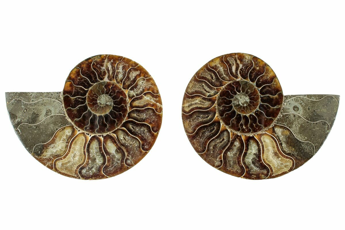 It exhibits gorgeous mineralization within the chambers, each separated by white calcite septa (divisions). This highly polished exotic ammonite makes a superb display piece with tremendous historical appeal.