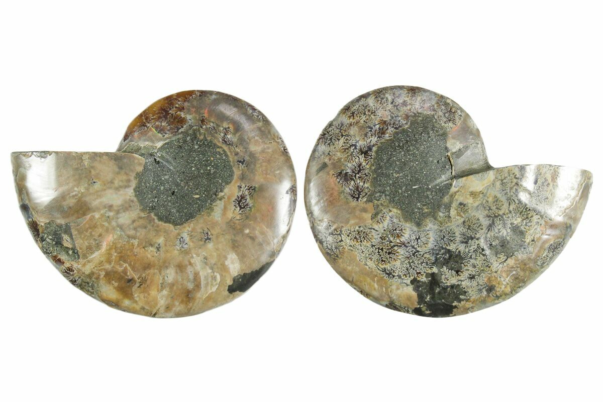 It exhibits gorgeous mineralization within the chambers, each separated by white calcite septa (divisions). This highly polished exotic ammonite makes a superb display piece with tremendous historical appeal.