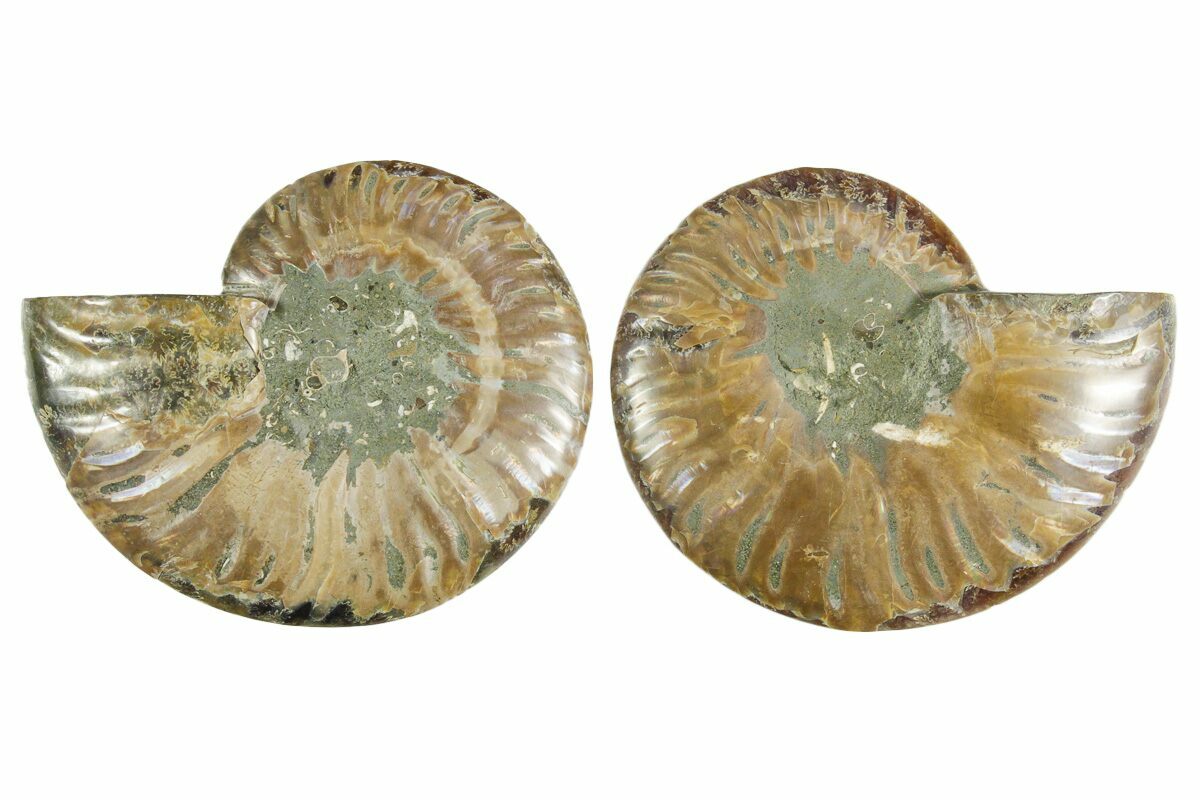 It exhibits gorgeous mineralization within the chambers, each separated by white calcite septa (divisions). This highly polished exotic ammonite makes a superb display piece with tremendous historical appeal.