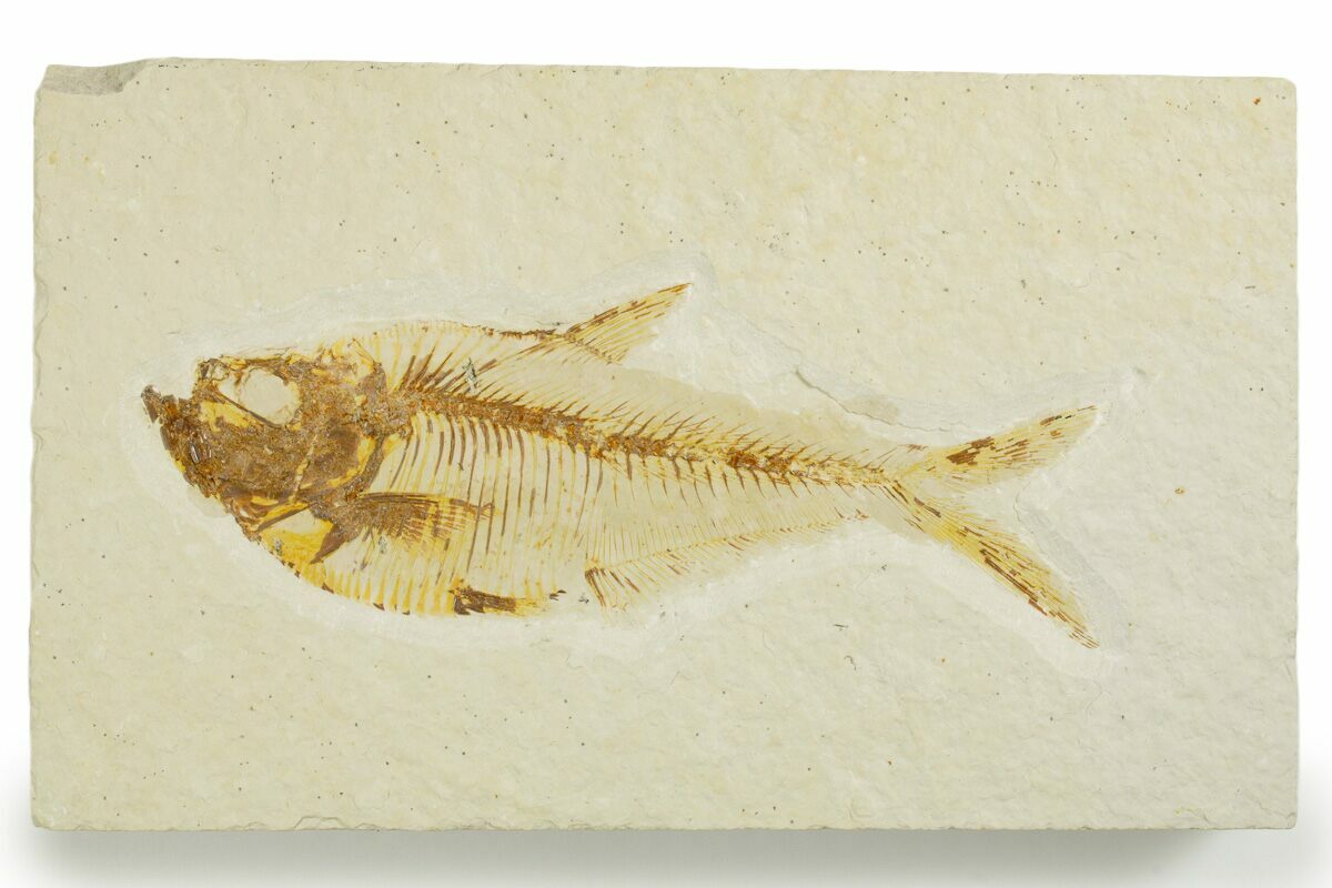 This is a 3.8" long fossil fish (Diplomystus dentatus) from the famous Green River Formation. It comes from our own Fossil Lake Safari quarry just outside of Kemmerer, Wyoming.