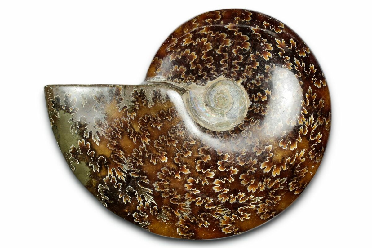 This is a 3.8" wide polished ammonite of the genus Cleoniceras, collected in Madagascar. It is absolutely gorgeous, displaying a distinctive "oak-leaf" suture pattern on the surface. This 110 million year old ammonite is truly a natural work of art, displaying beautifully on the included acrylic stand.