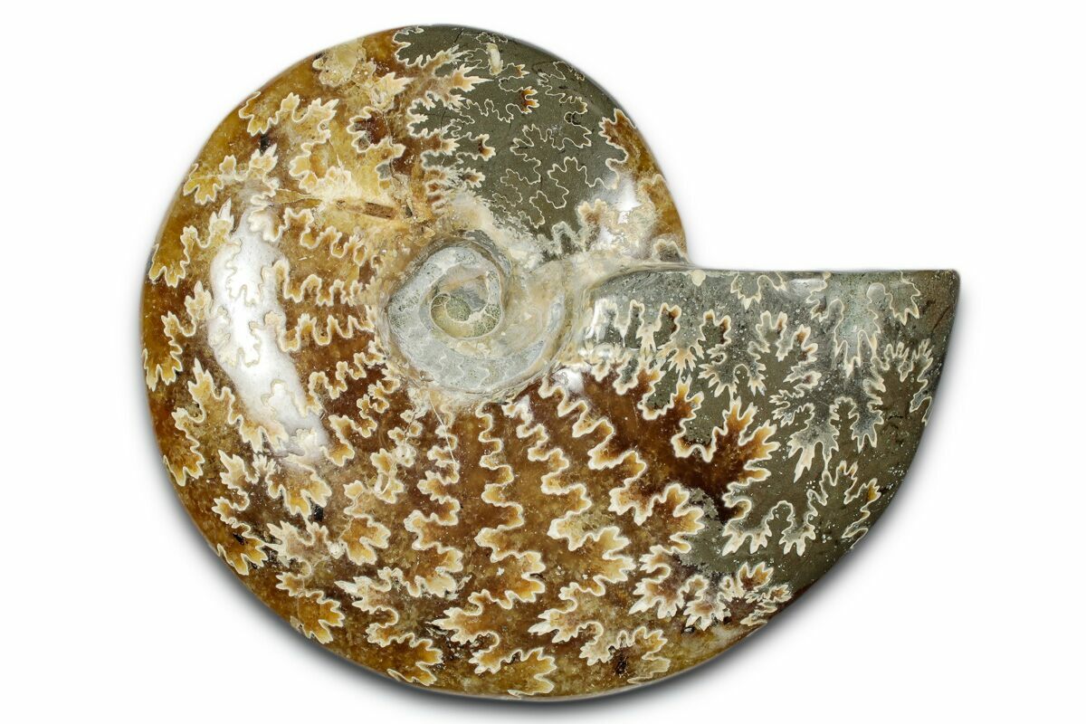 This is a 3.8" wide polished ammonite of the genus Cleoniceras, collected in Madagascar. It is absolutely gorgeous, displaying a distinctive "oak-leaf" suture pattern on the surface. This 110 million year old ammonite is truly a natural work of art, displaying beautifully on the included acrylic stand.