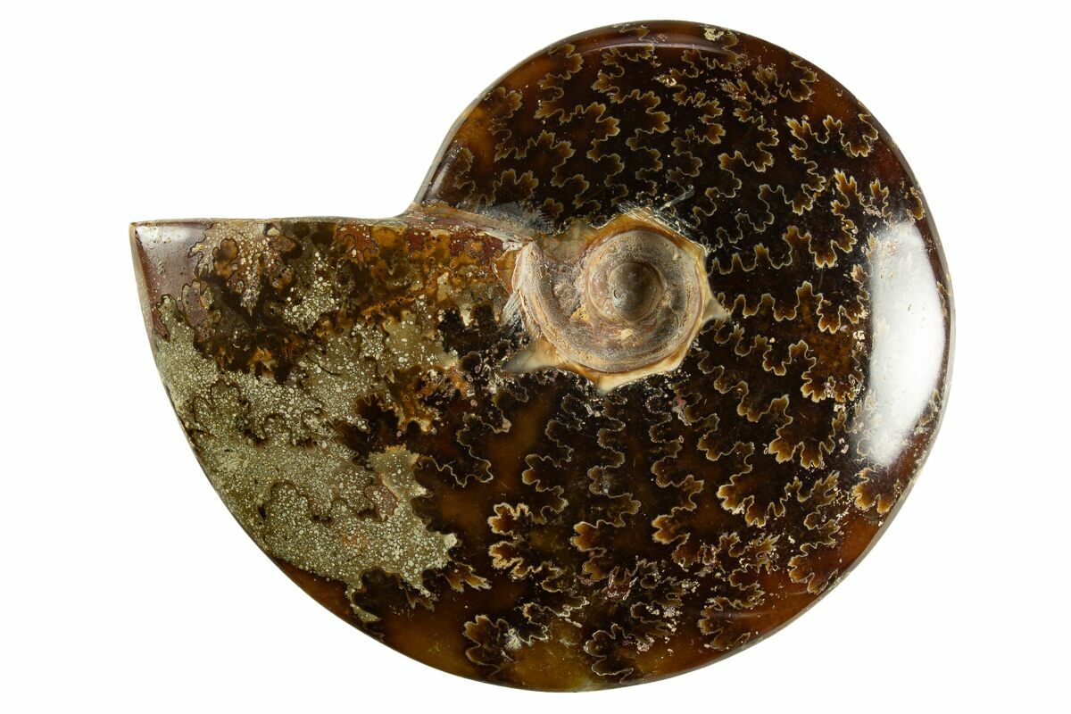 This is a 3.8" wide polished ammonite of the genus Cleoniceras, collected in Madagascar. It is absolutely gorgeous, displaying a distinctive "oak-leaf" suture pattern on the surface. This 110 million year old ammonite is truly a natural work of art, displaying beautifully on the included acrylic stand.