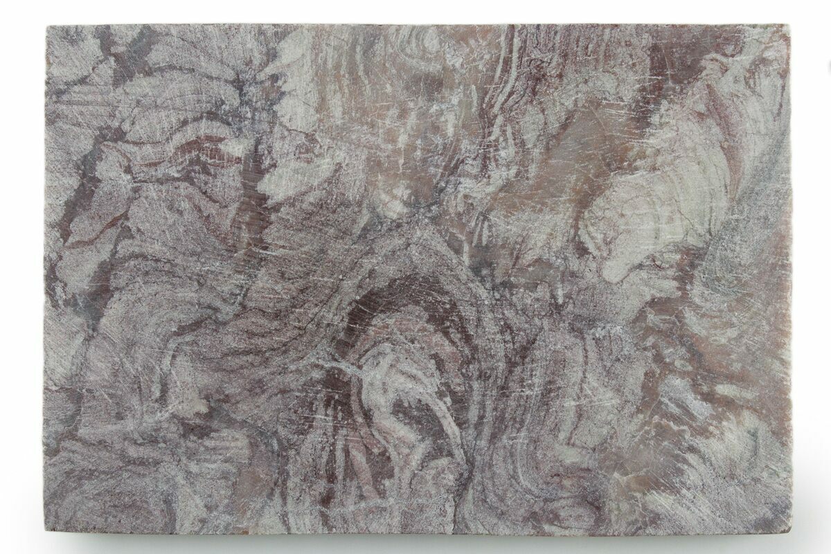 This is a 3.8" wide, polished slice of a Late Neoproterozoic-Ediacaran Period stromatolite (Conophyton amantourartensis) from the Upper Tachgagalt Formation in the Souss-Massa-Draa region of Morocco. It has been cut flat on both sides and polished to a matte finish.