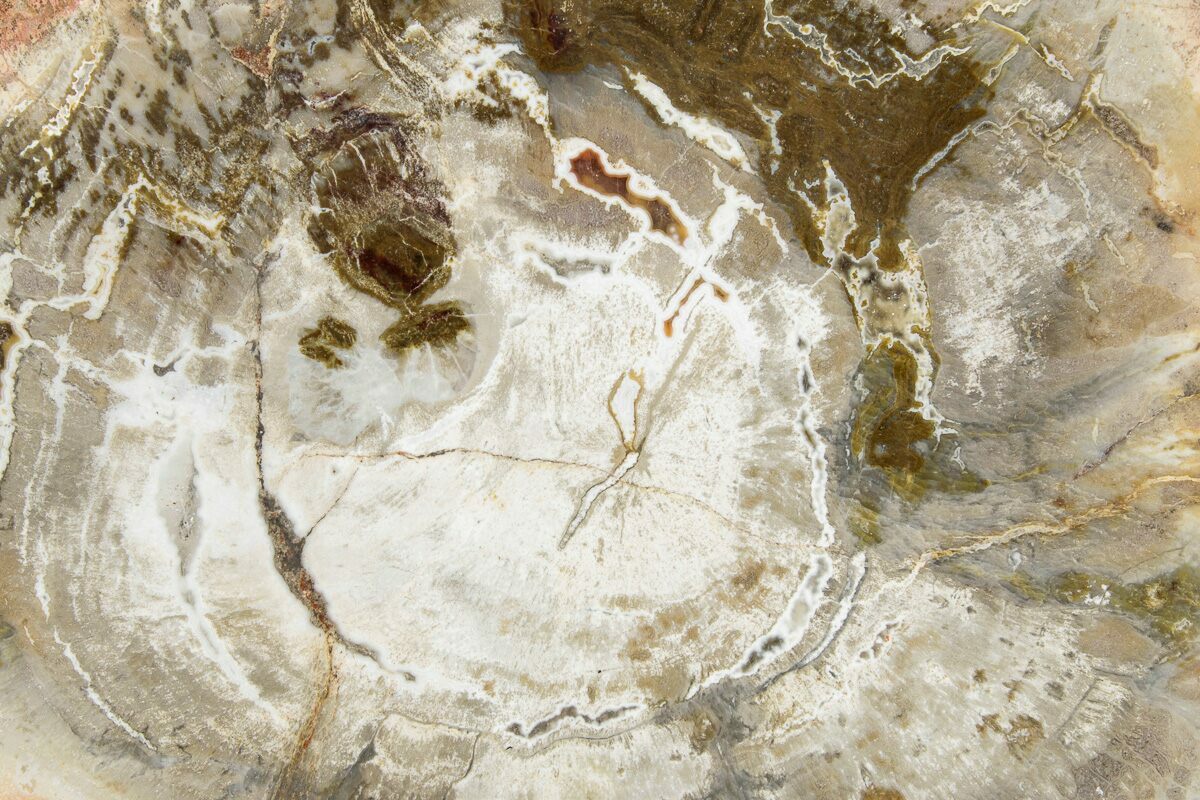 Madagascar petrified wood comes primarily from extensive Triassic-aged deposits in the Mahajanga Basin of northwestern Madagascar, where ancient conifer forests—often attributed to species related to Araucarioxylon—were buried by volcanic ash and floodplain sediments roughly 225–240 million years ago. Over immense spans of time, silica-rich fluids percolated through these sediments, replacing the cellular structure of the wood with chalcedony, jasper, agate, and quartz while preserving growth rings, bark textures, and even microscopic details. The region’s unique geochemistry—especially its iron, manganese, and occasionally copper content—produces the vivid palette Madagascar petrified wood is famous for, including deep brick reds, golden yellows, smoky blacks, and pastel pinks. Many logs are found fully silicified and naturally fractured into large, rounded segments that local artisans cut into slabs, spheres, eggs, and freeforms. These deposits stretch across arid badlands where erosion steadily exposes new material, making Madagascar one of the world’s premier sources of highly colorful, beautifully patterned fossil wood.
