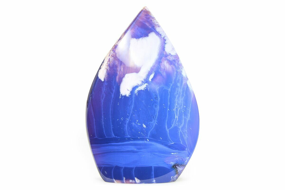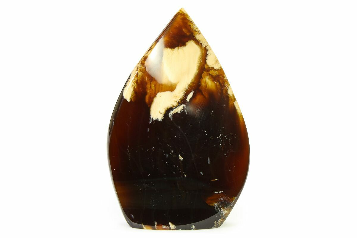 This is a 3.8" tall piece of "blue" amber collected from coal deposits near West Kalimantan, Indonesia. It has been shaped in the a "flame" sculpture and the base is cut flat so that it stands up nicely on a flat surface.