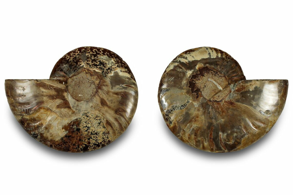 It exhibits gorgeous mineralization within the chambers, each separated by white calcite septa (divisions). This highly polished exotic ammonite makes a superb display piece with tremendous historical appeal.