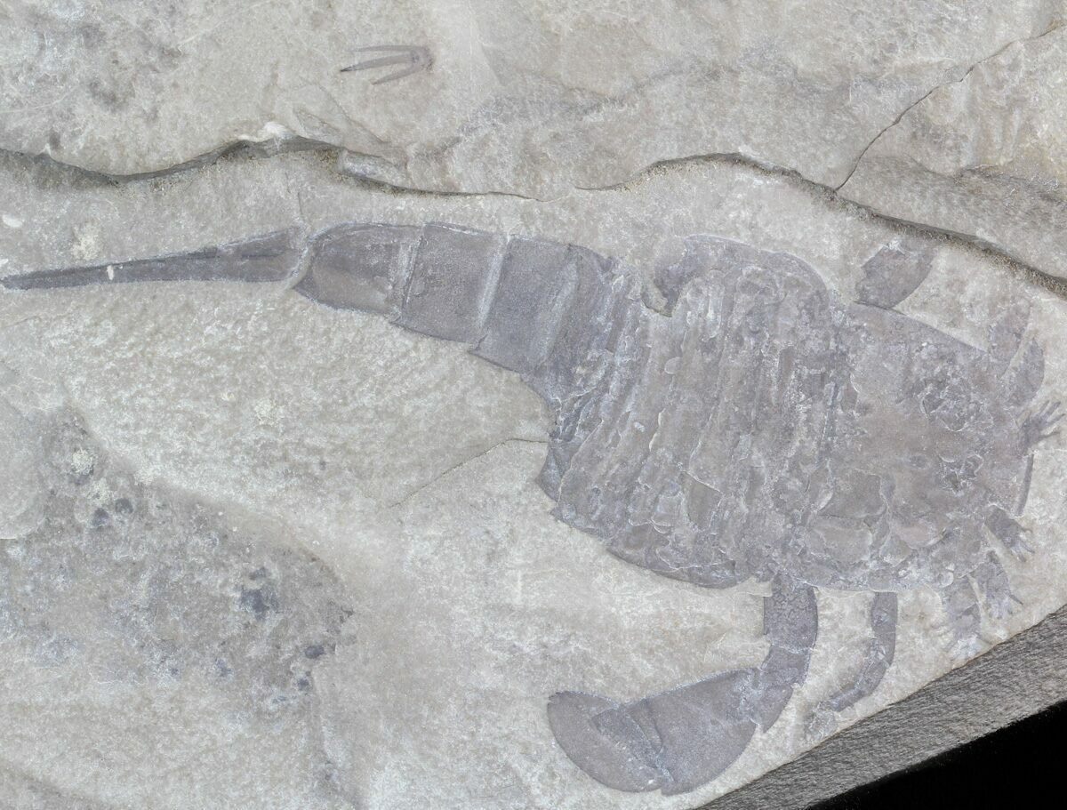 This is a 3.85" long specimen of the Eurypterid, Eurypterus remipes from New York. It is Upper Silurian in age from the Phelps Member of the Fiddler Green Formation.