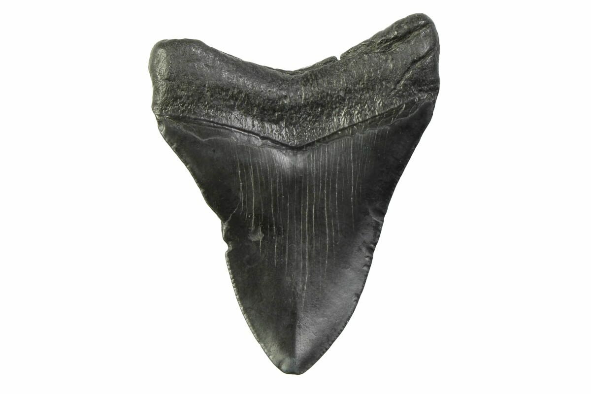 Megalodon had a cosmopolitan (global) distribution and its giant teeth can be found in deposits throughout the world. Some are collected on land in phosphate deposits, while many are collected from rivers and coastlines after eroding out of the rocks. This contributes to the water-worn, polished appearance of many teeth.