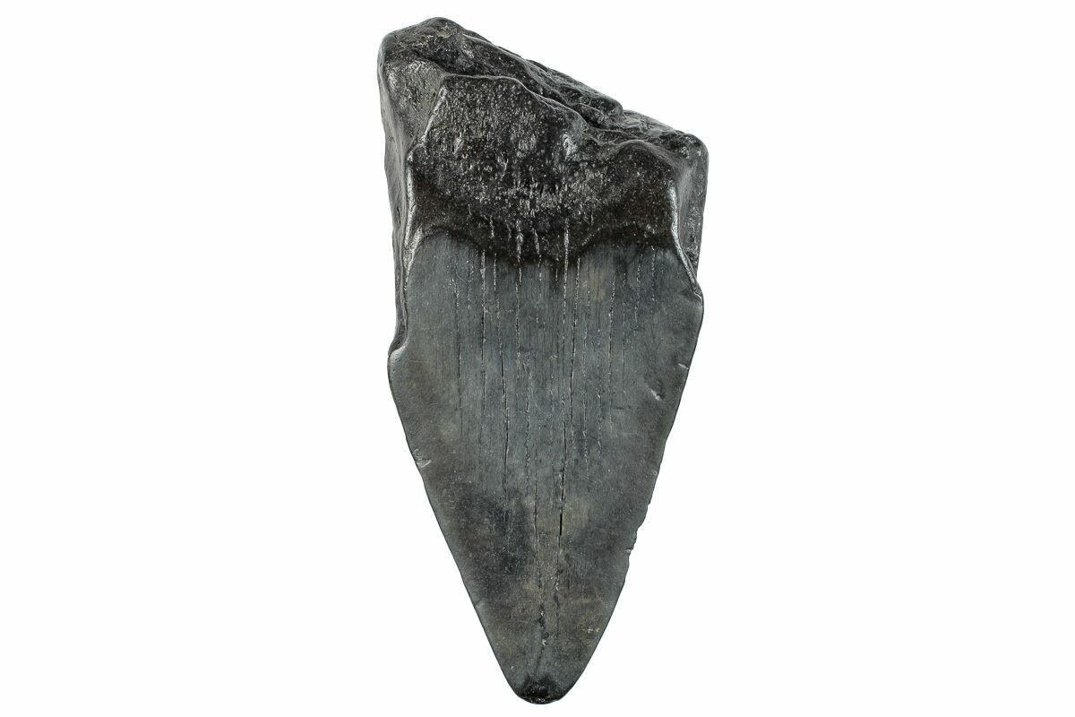 The standard measure for megalodon teeth is slant height, or the longest edge of the tooth. Adult megalodon teeth were typically in the 4 to 5 inch range: teeth over 6 inches are rare and represent super-sized individuals. Only a handful of teeth have ever been found over seven inches.