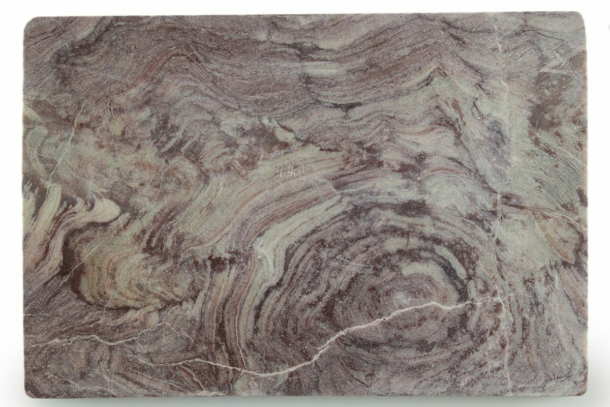 This is a 3.9" wide, polished slice of a Late Neoproterozoic-Ediacaran Period stromatolite (Conophyton amantourartensis) from the Upper Tachgagalt Formation in the Souss-Massa-Draa region of Morocco. It has been cut flat on both sides and polished to a matte finish.