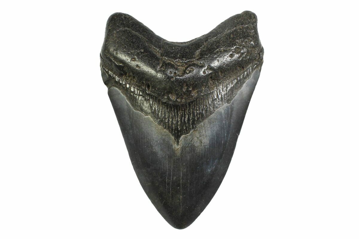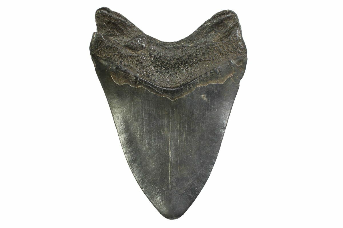 This is a 3.94" long, fossil megalodon tooth collected in South Carolina. The tooth would have come from an adult, prehistoric, mega-shark in the 35+ foot size range.