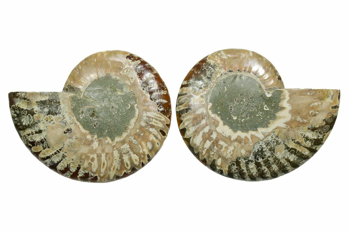 It exhibits gorgeous mineralization within the chambers, each separated by white calcite septa (divisions). This highly polished exotic ammonite makes a superb display piece with tremendous historical appeal.