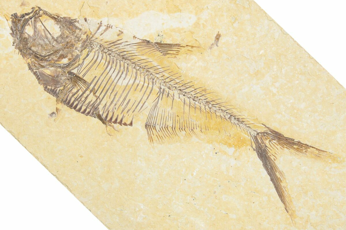 Today the wonderfully preserved fossils of Diplomystus and other Fossil Lake fauna are collected in several private quarries around Kemmerer, Wyoming. The best preserved fish fossils come from the coveted 18 Inch Layer. This layer is collected at night under high-powered lights, enhancing the faint signs of fish under the surface indicating underlying fossils. These “ghosted” fish then must go through many hours of manual preparation to remove the overlying rock and reveal the Green River fauna in all of its glory.