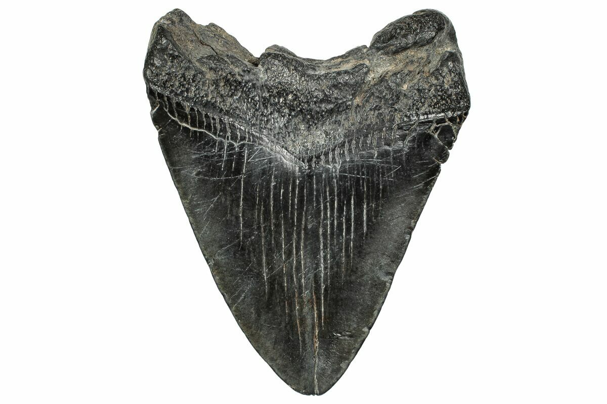 Megalodon had a cosmopolitan (global) distribution and its giant teeth can be found in deposits throughout the world. Some are collected on land in phosphate deposits, while many are collected from rivers and coastlines after eroding out of the rocks. This contributes to the water-worn, polished appearance of many teeth.