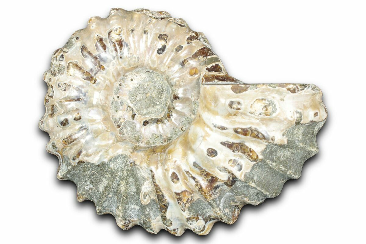 Ammonites were ancient marine cephalopods, similar to today's squids and octopuses, but with a defining feature: their distinctive, tightly coiled spiral shells. These shells, resembling those of modern nautiluses, served as both a protective home and a buoyancy aid, allowing ammonites to navigate the prehistoric seas with ease. First emerging around 240 million years ago in the Triassic Period, ammonites thrived for over 175 million years, adapting through numerous forms and sizes. As predatory creatures, they likely fed on smaller marine organisms, using their tentacles to capture prey. However, their long reign came to an end 65 million years ago at the close of the Cretaceous, coinciding with the mass extinction event that also eliminated the dinosaurs.