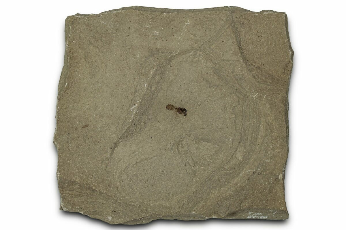 This is a detailed, .3" long fossil ant (family Formicidae) from the Green River Formation of Utah. While this formation is best known for well preserved fossil fish found in Wyoming, other sections of the formation contain a very diverse insect fauna.