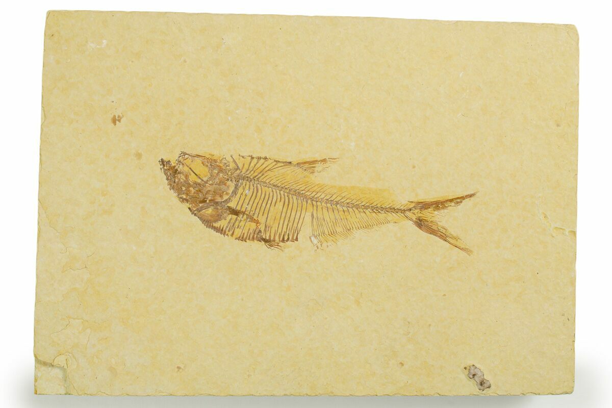 This is a detailed, 3" long fossil fish (Diplomystus dentatus) from the famous Green River Formation. It comes from a specific bedding plane in our own Fossil Lake Safari quarry that we refer to as the mud layer. It's a volcanic ash layer which contains a mass mortality of different fish.