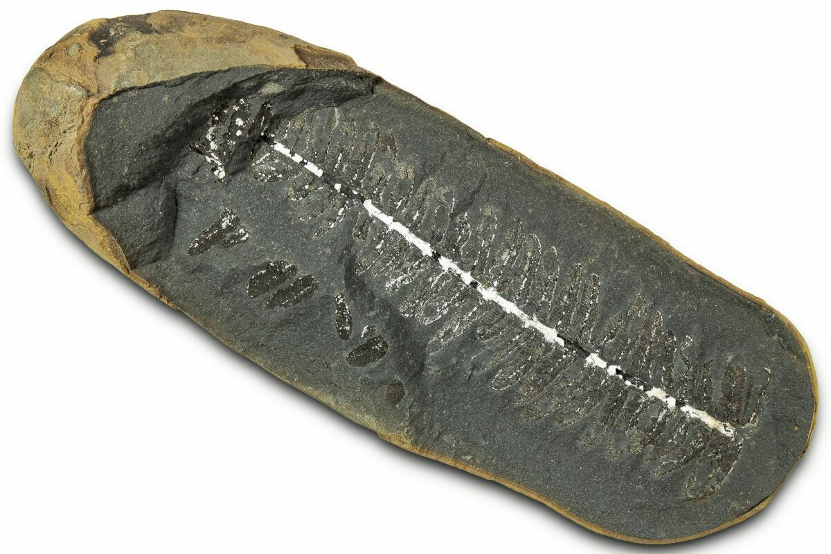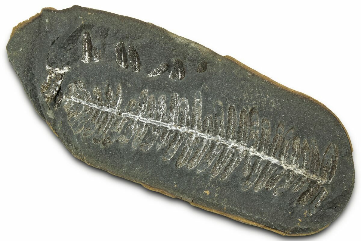 This is a 3" fern fossil (Pecopteris sp.) from the Carbondale Formation (Francis Creek Shale) in Braidwood, Illinois. It is preserved inside an ironstone nodule associated with the famous Mazon Creek Lagerstätte. Under magnification the detail of this specimen stands out. Both the positive (convex) and negative (concave) sides of the fossil nodule are included.