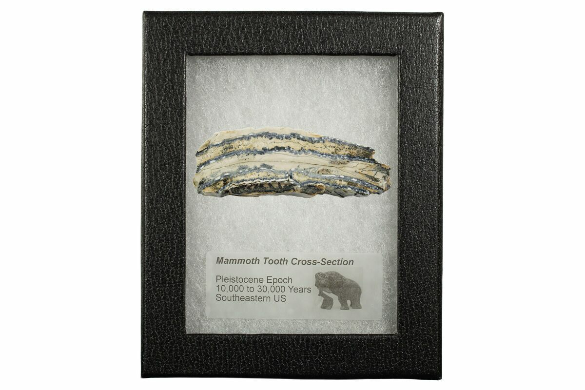 This is a interesting, cross-sectional slice of a Columbia Mammoth (Mammuthus columbi) molar collected from the coastal region of South Carolina. It comes with a riker mount display case.
