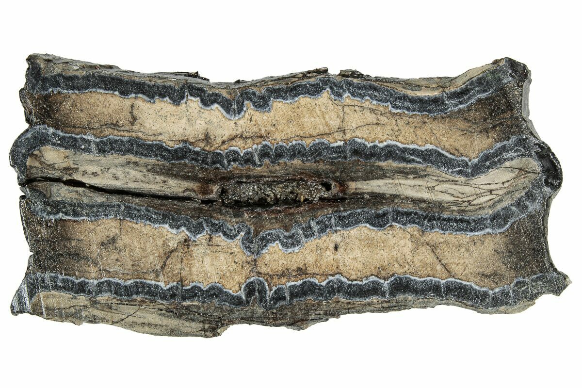 This is a interesting, cross-sectional slice of a Columbia Mammoth (Mammuthus columbi) molar collected from the coastal region of South Carolina. It comes with a riker mount display case.