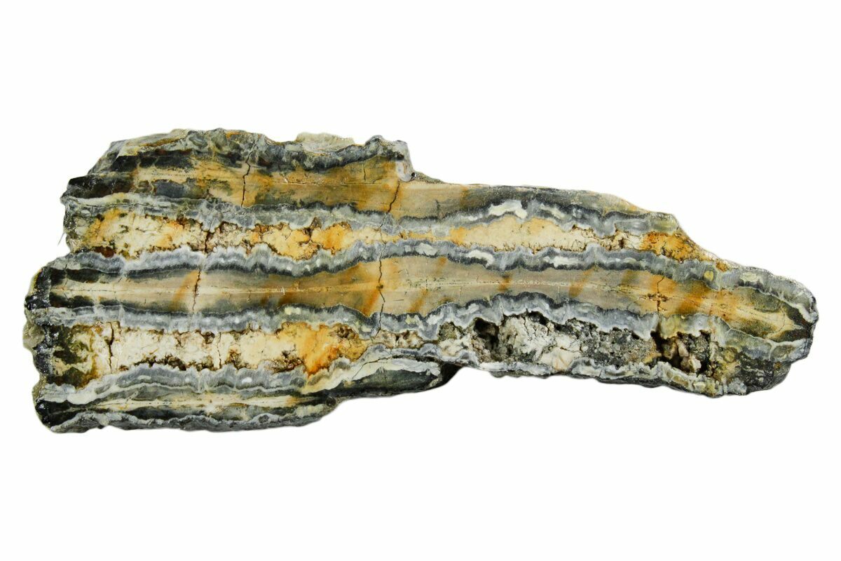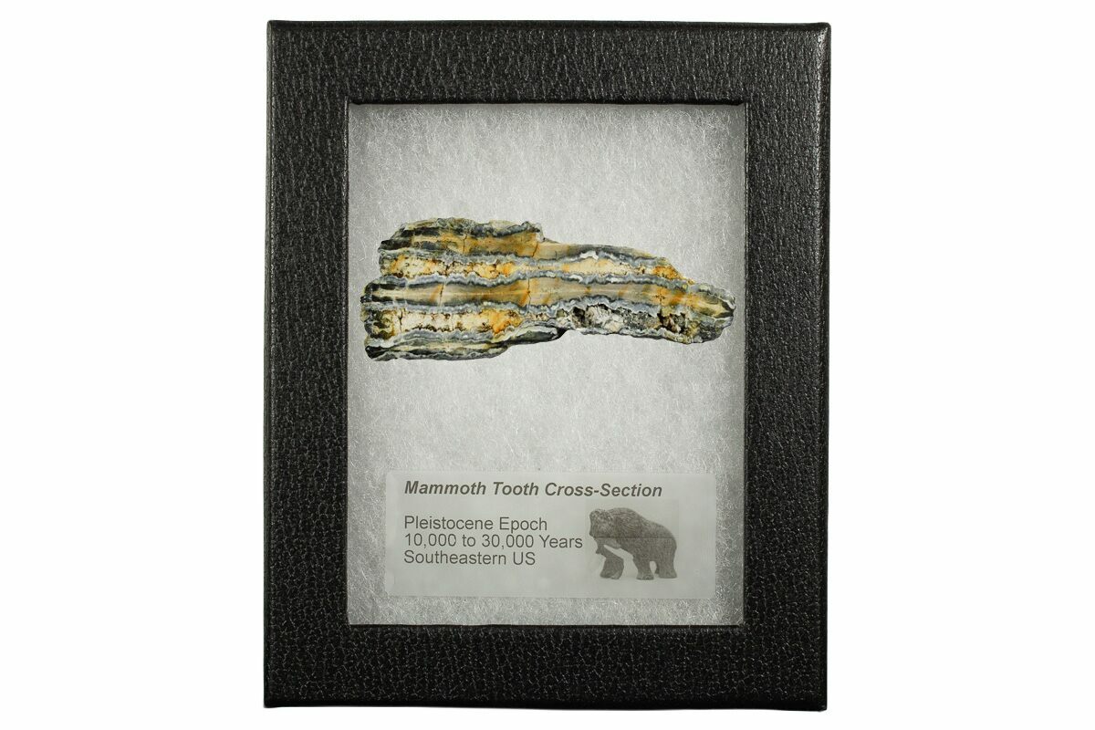 This is a interesting, cross-sectional slice of a Columbia Mammoth (Mammuthus columbi) molar collected from the coastal region of South Carolina. It comes with a riker mount display case.