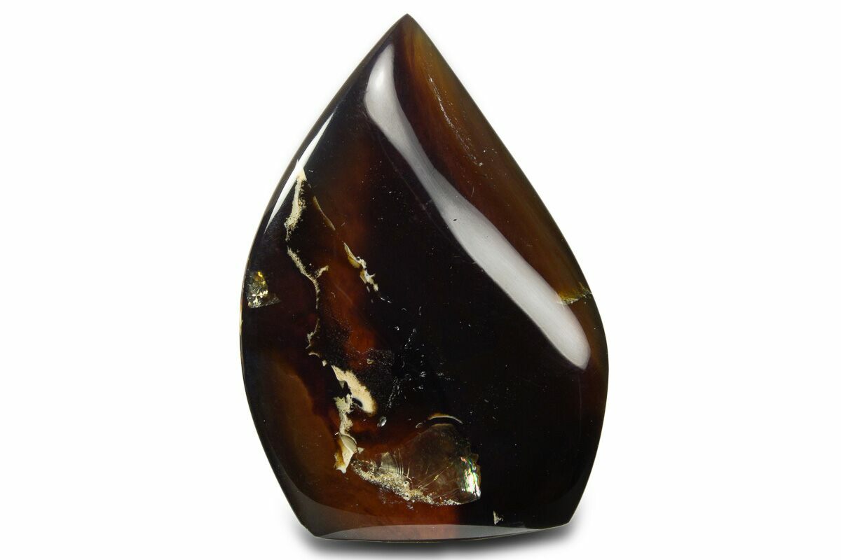 This is a 3" tall piece of "blue" amber collected from coal deposits near West Kalimantan, Indonesia. It has been shaped in the a "flame" sculpture and the base is cut flat so that it stands up nicely on a flat surface.