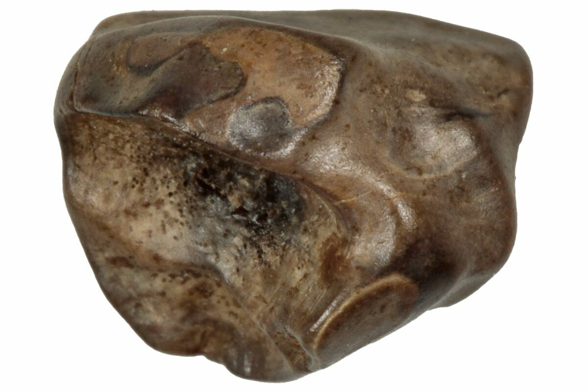 This is a .30" wide tooth from a nodosaurid (Denversaurus schlessmani) dinosaur, collected from the Hell Creek Formation of Montana. The tooth is heavily worn, as are most of the nodosaur teeth we've seen from this formation.