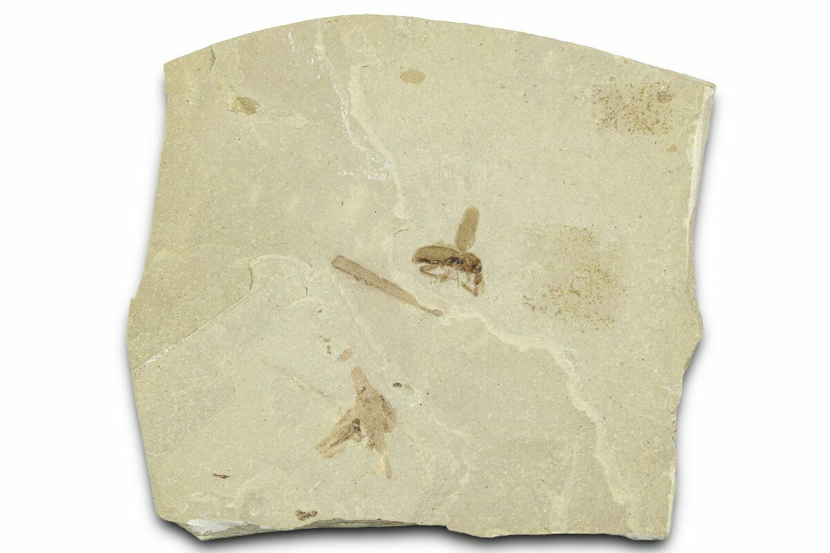 This is a detailed, .31" long fossil weevil (family Curculionidae) with a raised elytron, collected from the Green River Formation of Utah. While this formation is best known for well preserved fossil fish found in Wyoming, other sections of the formation contain a very diverse insect fauna.