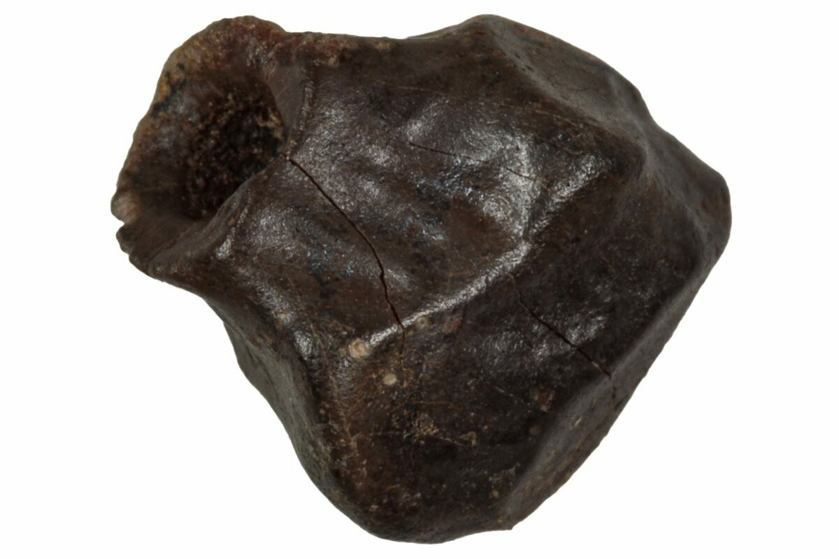 This is a .31" long tooth from a nodosaurid (Denversaurus schlessmani) dinosaur, collected from the Hell Creek Formation of Montana. The tooth is heavily worn, as are most of the nodosaur teeth we've seen from this formation.
