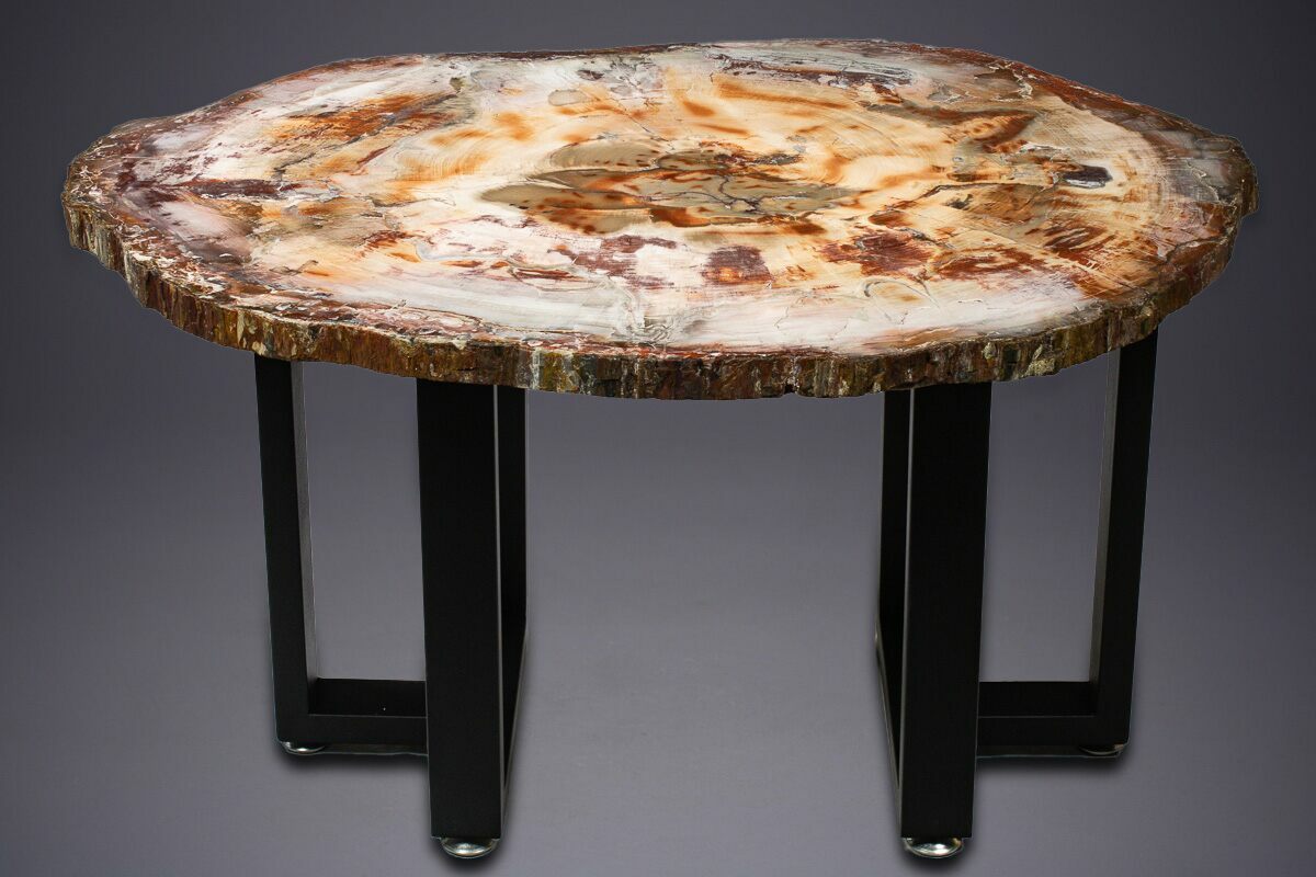One face has been expertly polished to a true mirror finish—free of dull spots, haze, or scuffing—bringing out the natural reddish-brown, white, and orange tones that make this specimen so visually extraordinary. A spectacular centerpiece for any fossil lovers home or office.