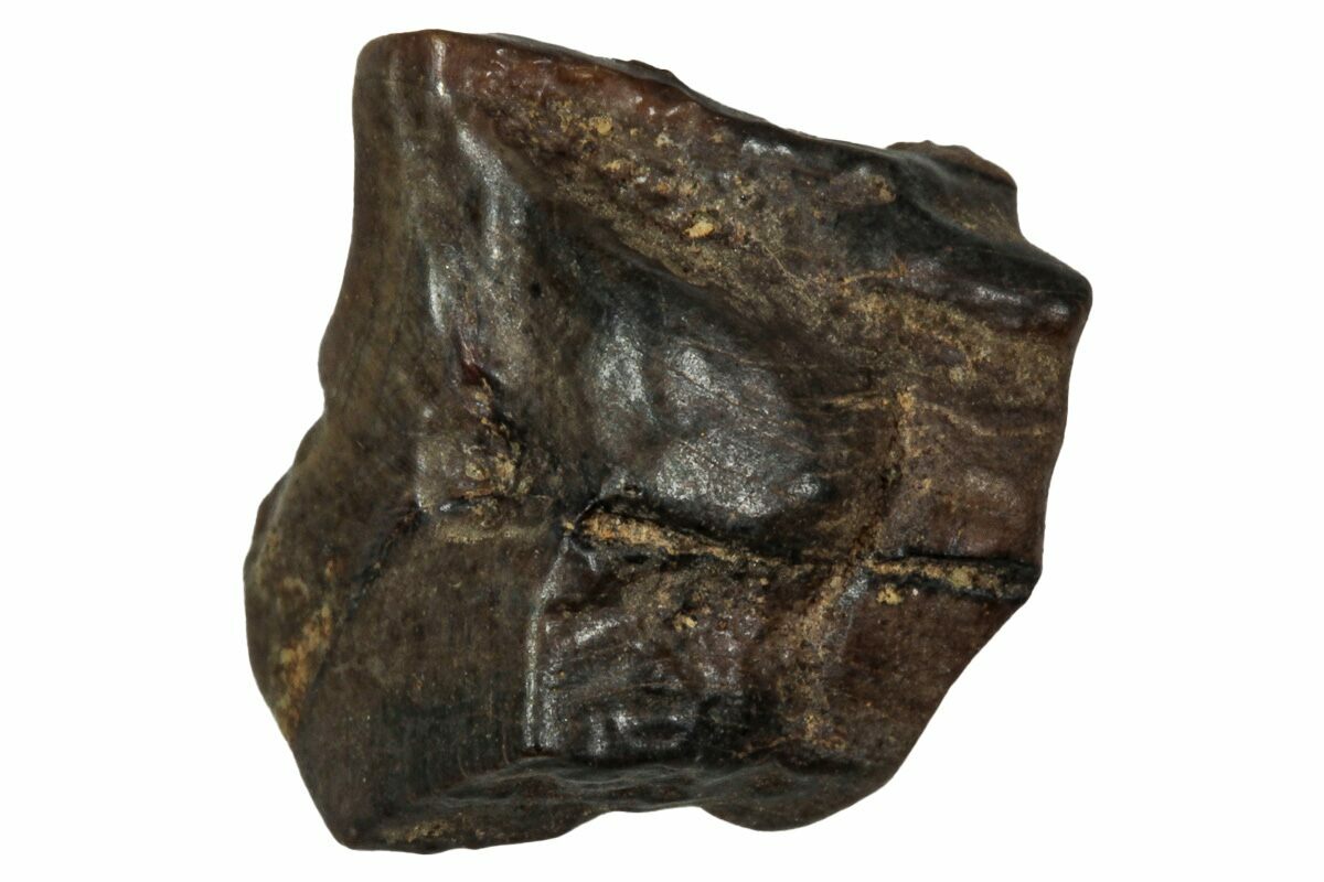 This specimen is one of those naturally shed teeth and features a polished chewing surface, showing clear evidence of the wear that came from processing vegetation millions of years ago.