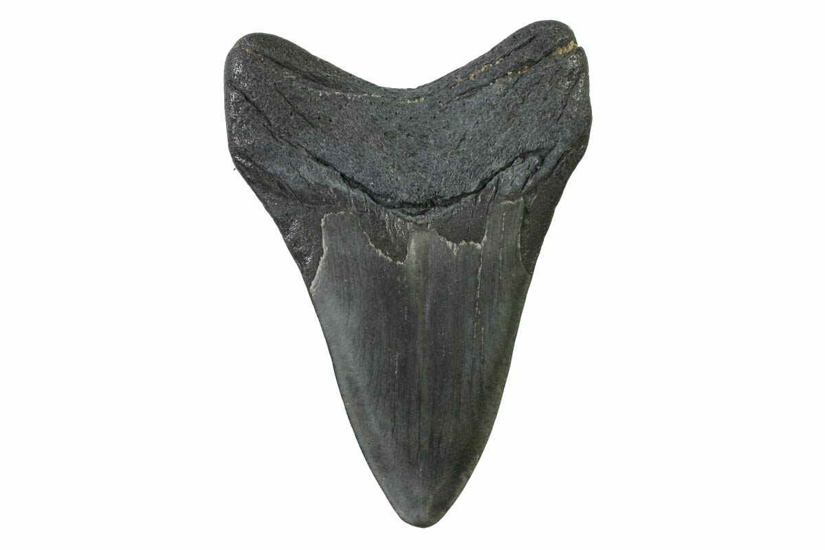 This is a 4.00" long fossil megalodon tooth collected from the Savannah River area along the border of Georgia and South Carolina. The tooth would have come from an adult, prehistoric, mega-shark in the 35+ foot size range.