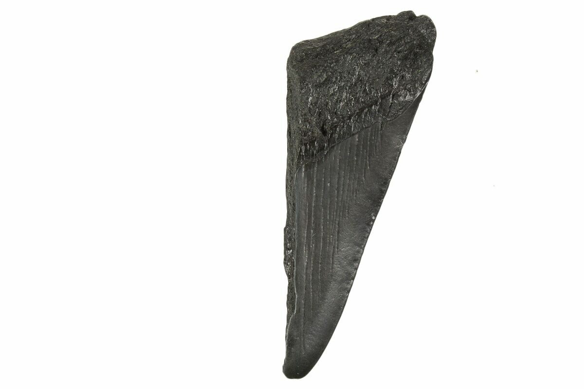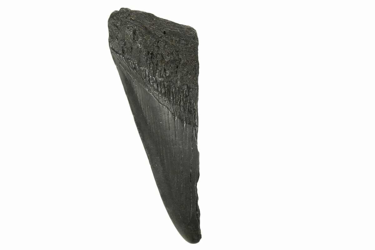 The standard measure for megalodon teeth is slant height, or the longest edge of the tooth. Adult megalodon teeth were typically in the 4 to 5 inch range: teeth over 6 inches are rare and represent super-sized individuals. Only a handful of teeth have ever been found over seven inches.