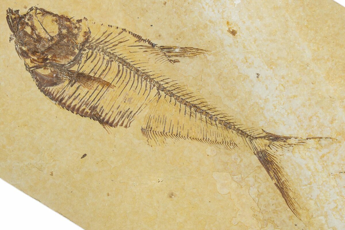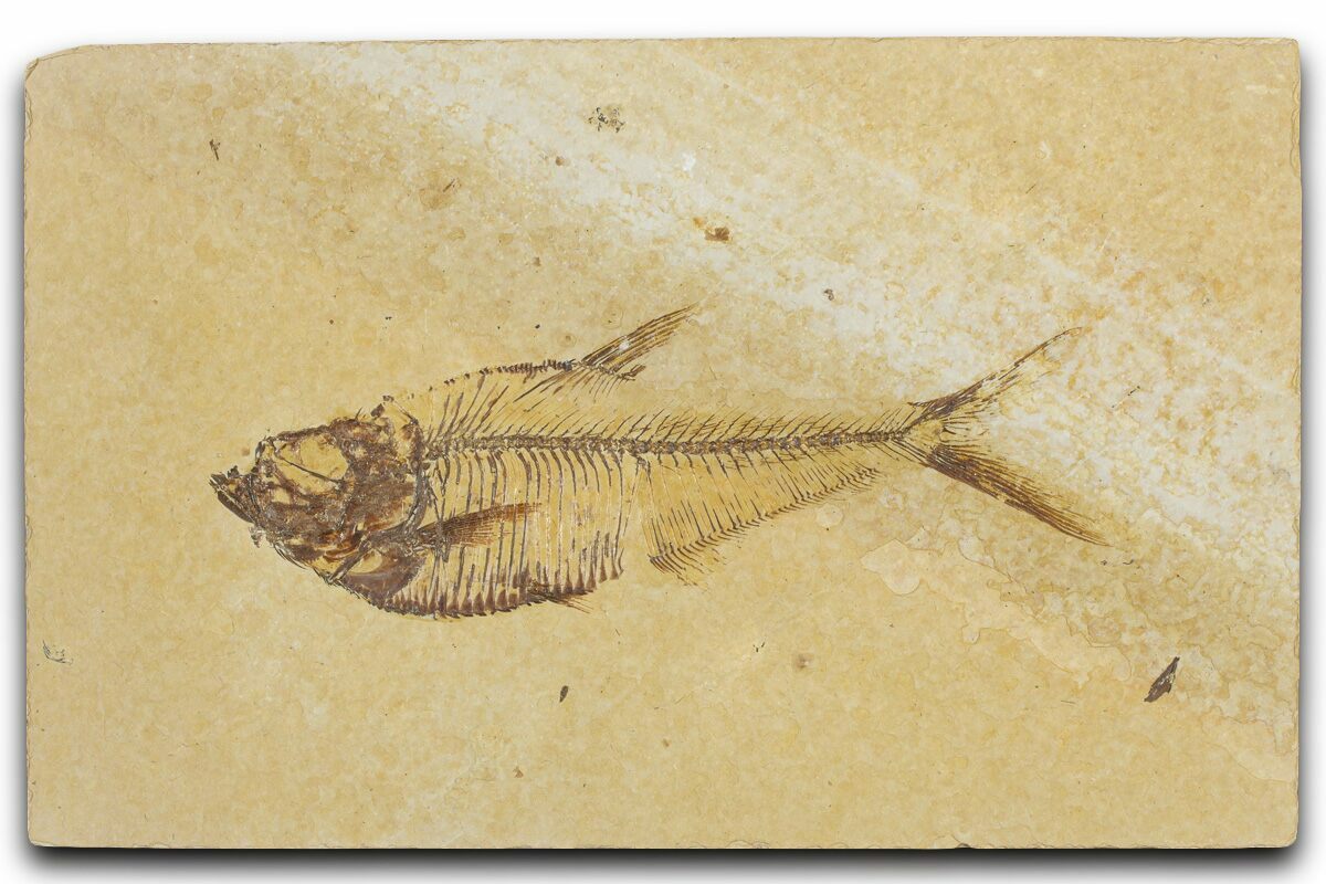 Today the wonderfully preserved fossils of Diplomystus and other Fossil Lake fauna are collected in several private quarries around Kemmerer, Wyoming. The best preserved fish fossils come from the coveted 18 Inch Layer. This layer is collected at night under high-powered lights, enhancing the faint signs of fish under the surface indicating underlying fossils. These “ghosted” fish then must go through many hours of manual preparation to remove the overlying rock and reveal the Green River fauna in all of its glory.