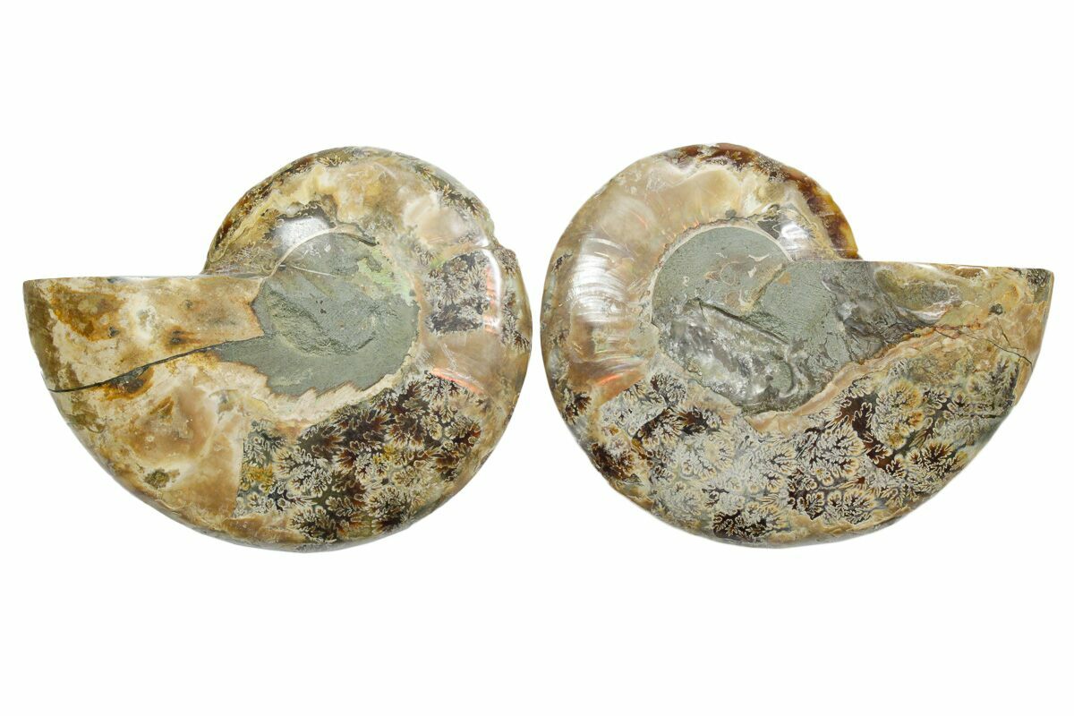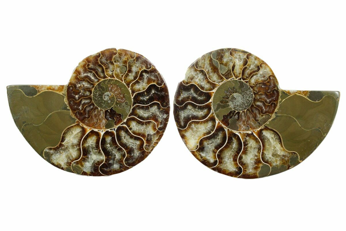Both halves are included along with a pair of display stands. There is some chipping along the edge of one half of the ammonite.