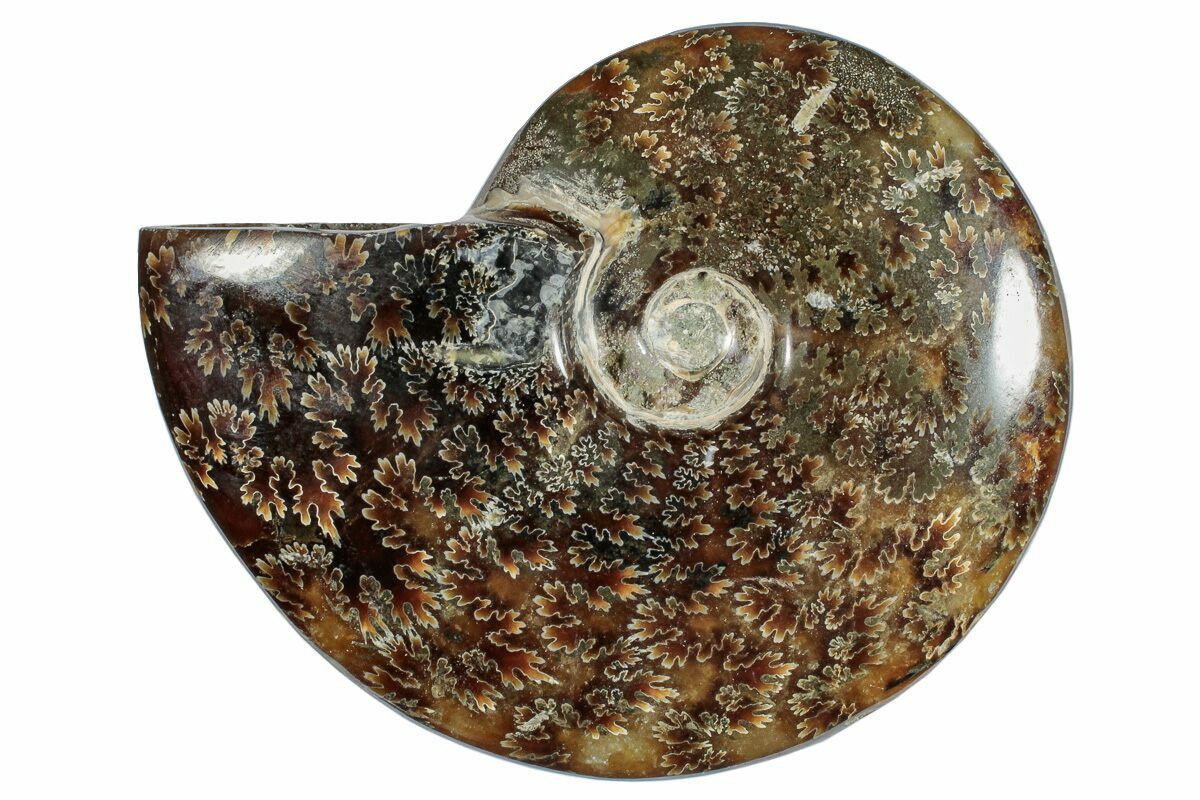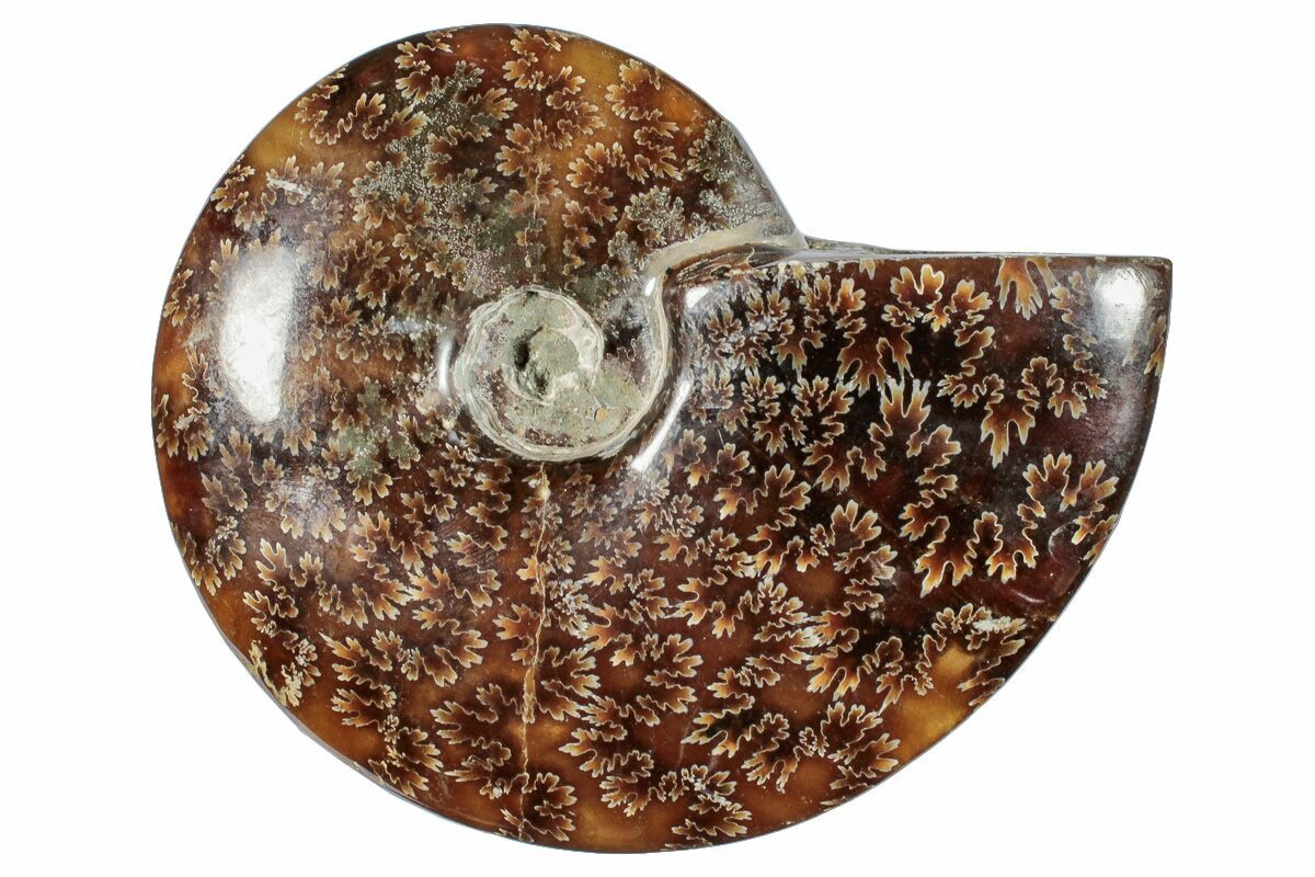 This is a 4.1" wide polished ammonite from Madagascar of the genus Cleoniceras. It is absolutely gorgeous, displaying a distinctive "oak-leaf" suture pattern on the surface. This 110 million year old ammonite is truly a natural work of art and is very displayable on the included acrylic stand.