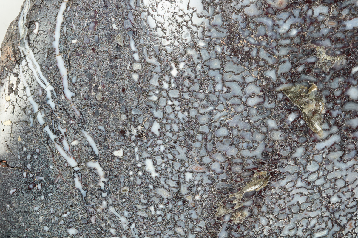 Dinosaur gembone, also known as agatized or fossilized dinosaur bone, is a rare and highly prized material formed when the porous structure of dinosaur bone is replaced by silica-rich minerals such as agate, chalcedony, or jasper over millions of years. This fossilization process preserves the intricate internal cell patterns of the original bone, which are often visible as vibrant, web-like structures under the polished surface.