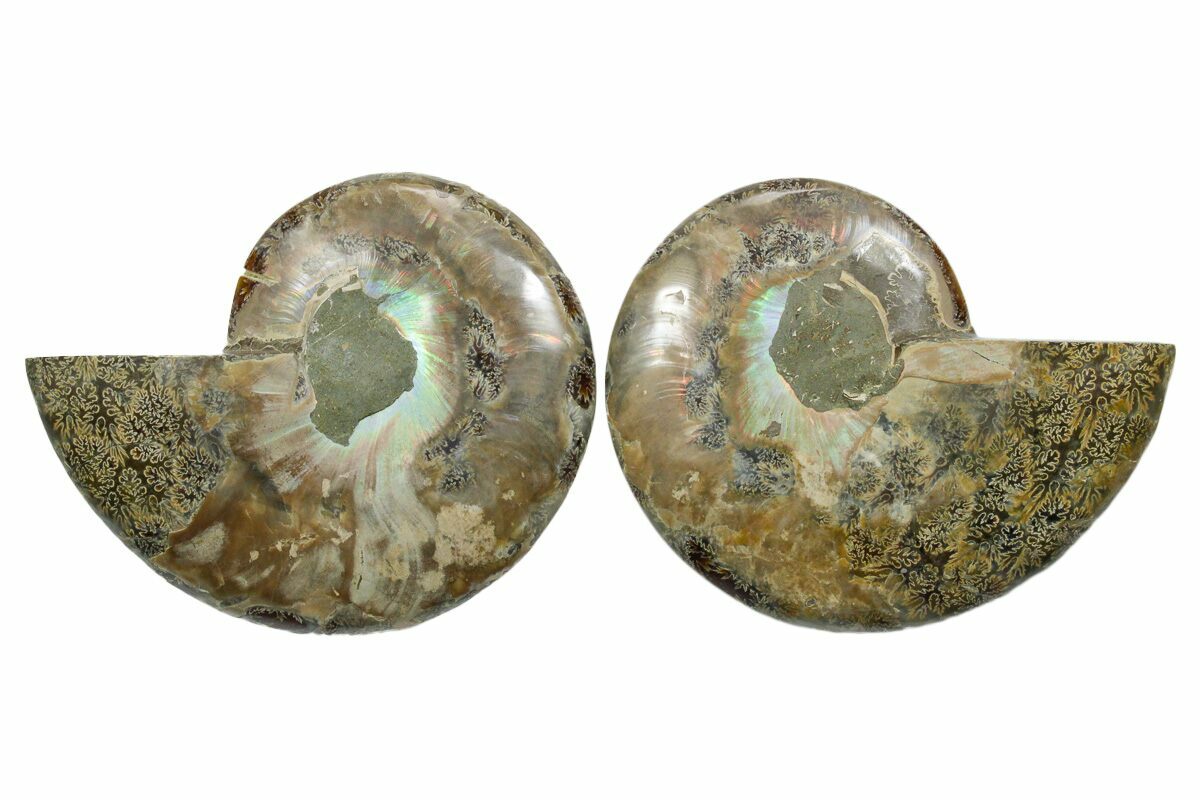 It exhibits gorgeous mineralization within the chambers, each separated by white calcite septa (divisions). This highly polished exotic ammonite makes a superb display piece with tremendous historical appeal.