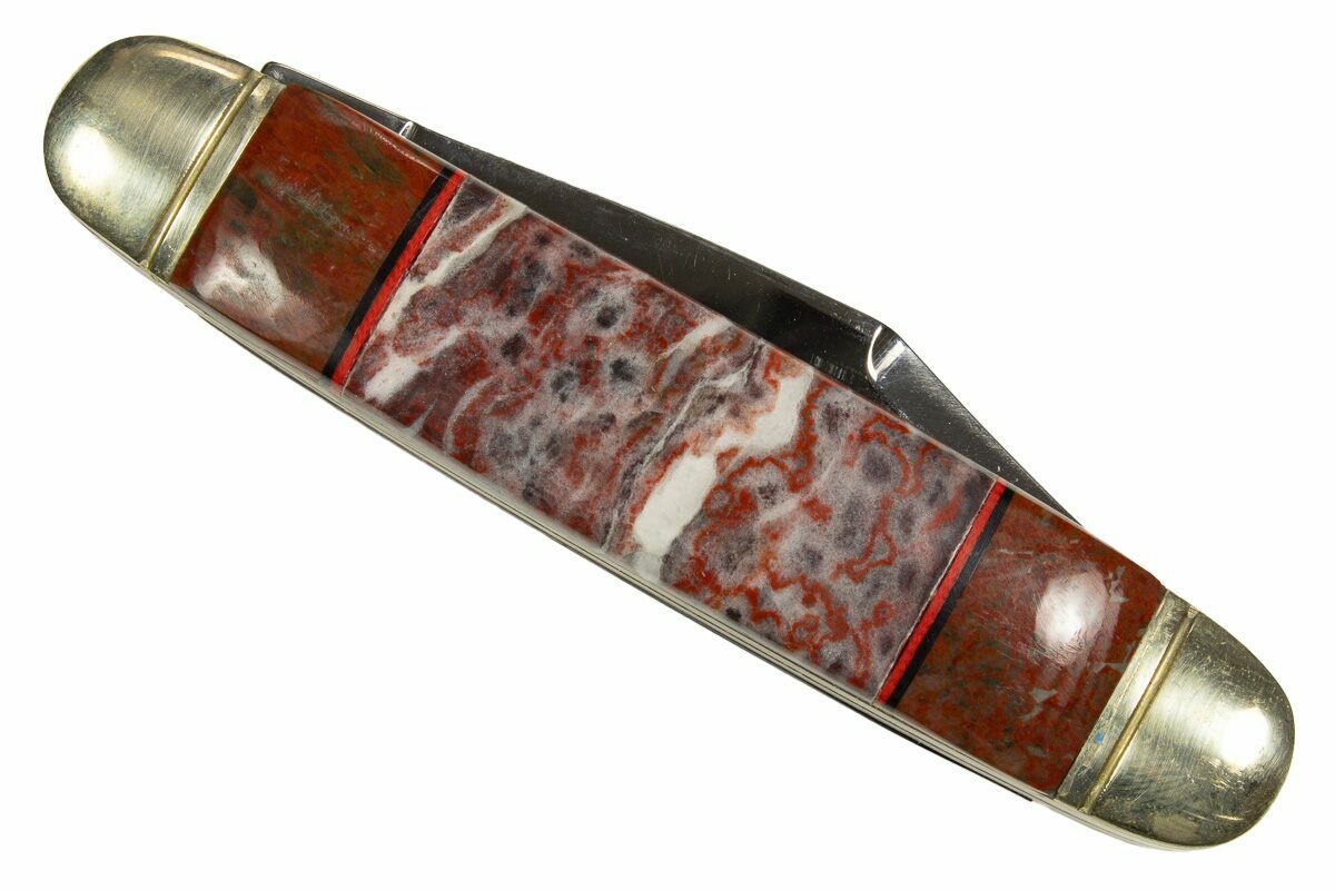 4.2" Pocket Knife With Fossil Dinosaur Bone & Agate Inlays