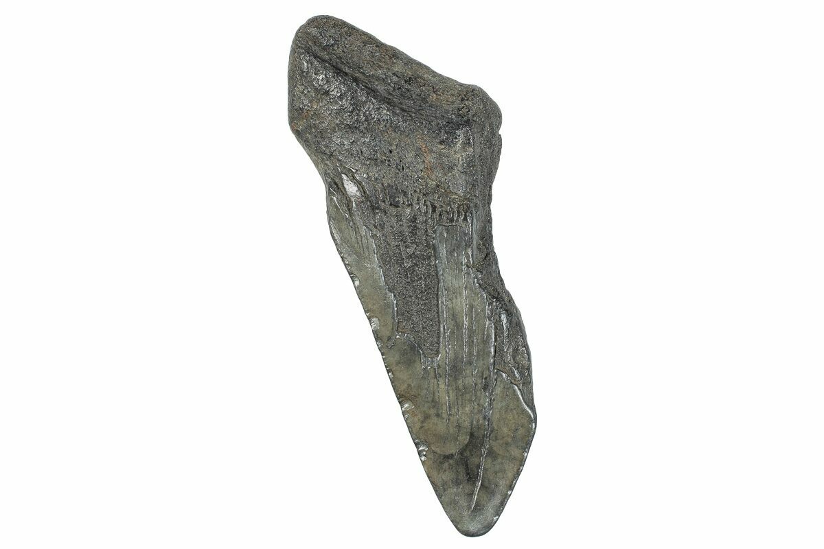 This is a bargain, 4.20" long fossil Megalodon tooth collected from a river in South Carolina. The tooth would have come from an adult, prehistoric, mega-shark in the 35+ foot size range.