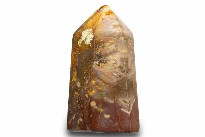 This is a 4.3" tall, polished tower made of colorful petrified wood from Ambilobe, Madagascar. The base of the piece has been cut flat so that it stands up nicely on a hard surface.